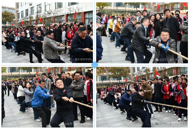 为丰富师生们课余生活,增强体质,培养集体主义观念,提高班级凝聚力,近期,昌乐博闻学校举行了师生拔河比赛。