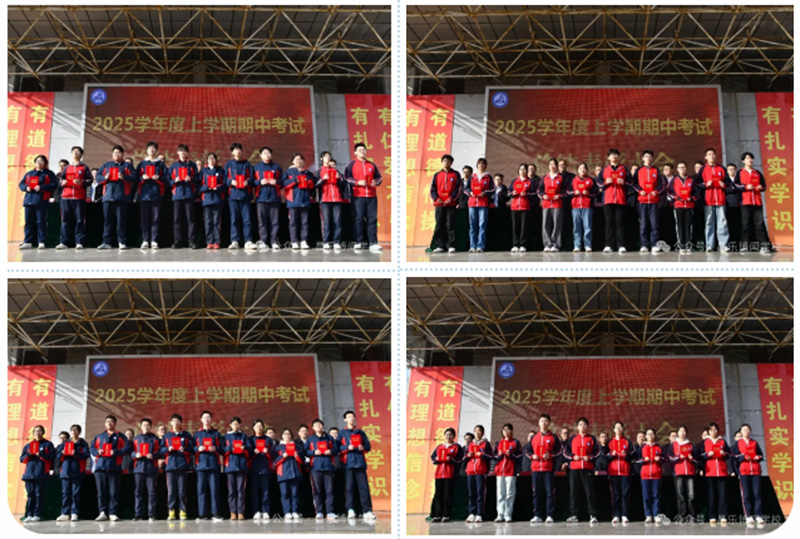高三包级领导宣读了表彰决定,现场在热烈的乐曲中,获奖师生上台领奖。