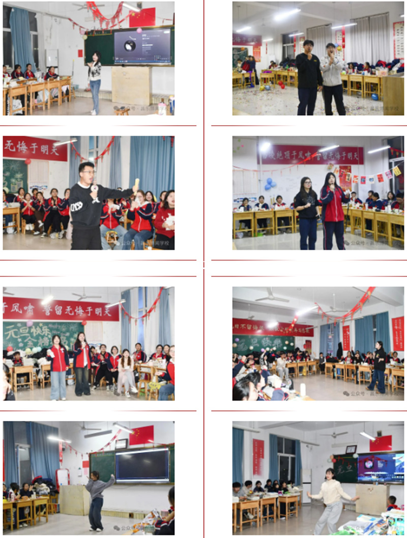 晚会以班级为单位,由学生自主策划、组织。各班教室被彩带、气球、窗花装扮得喜庆祥和,充满了浓厚的节日氛围。同学们充分发挥才华与创意,节目形式多样,精彩纷呈:深情款款的歌曲演唱、活力四射的舞蹈表演、令人捧腹的相声小品、引人入胜的乐器演奏、妙趣横生的互动游戏……舞台上,同学们自信展示,尽情挥洒青春活力;舞台下,掌声、笑声、喝彩声此起彼伏,汇聚成欢乐的海洋。